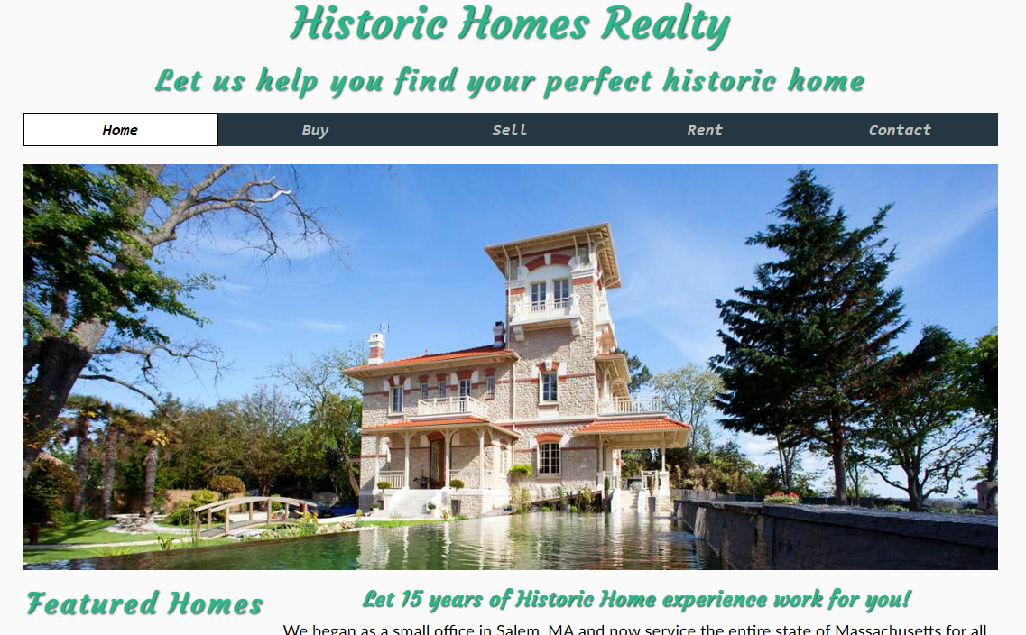 For our midterm project, he wanted us to design our own realty website using the tools and techniques that we used throughout the semester. I focused on a historic homes website since I am most familiar with older-style homes, and it could have been the most unique compared to other projects. The page required an index, buy, sell, and rent page, with a contact page as extra credit.